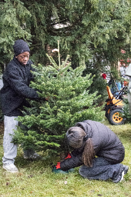 Unsere engagierten Schülerinnen und Schüler hatten sichtlich Freude daran, den Verkauf zu begleiten: vom Beraten über die Baumwahl, über das sorgfältige Einnetzen bis hin zum Transport.